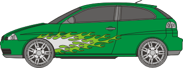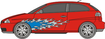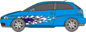Das zweifarbige Set beinhaltet die Aufkleber für zwei Fahrzeugseiten.