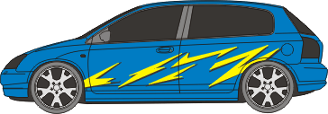 Jedes Set beinhaltet die Aufkleber für zwei Fahrzeugseiten.