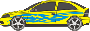Das Set beinhaltet die Aufkleber für zwei Fahrzeugseiten.